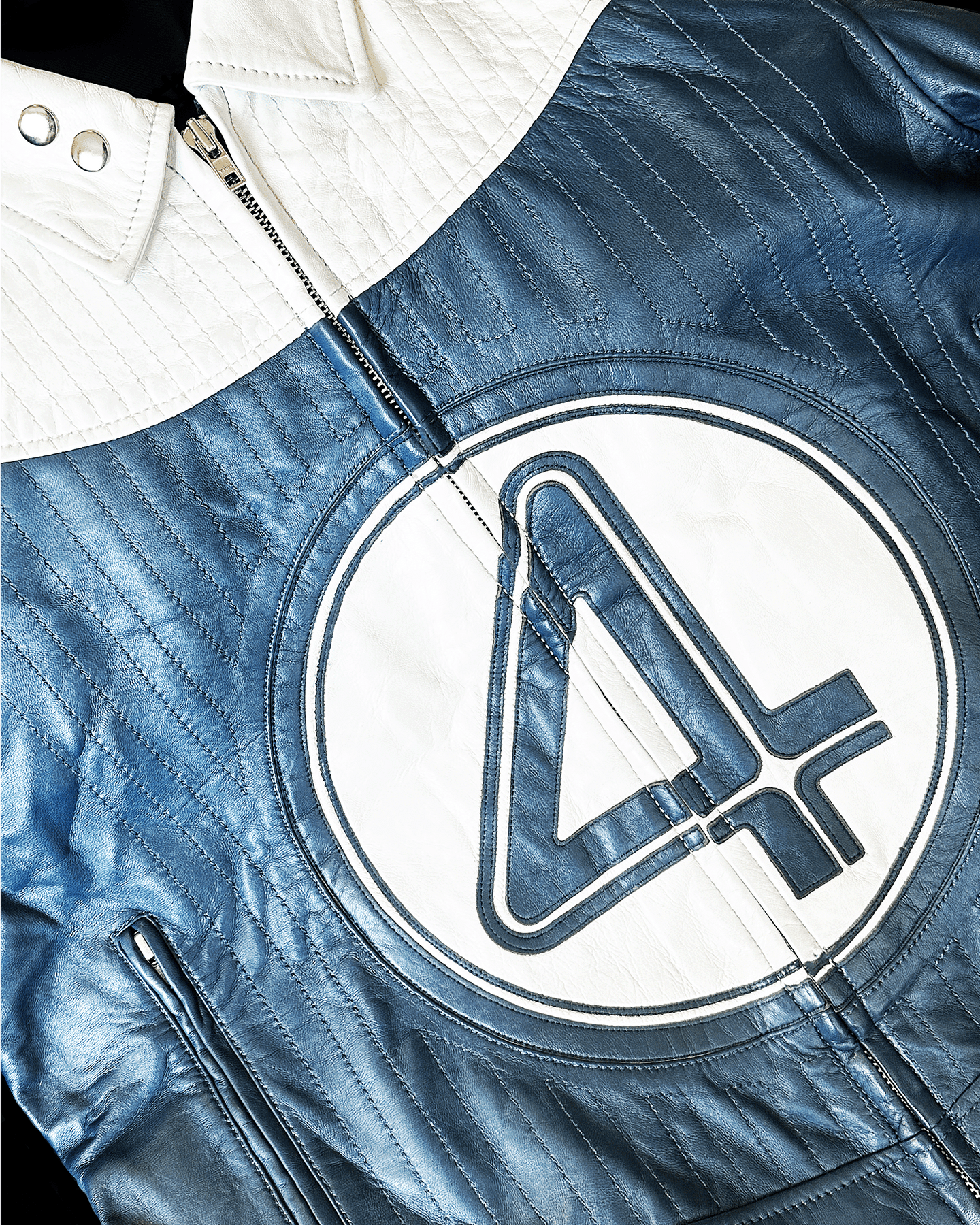 This is a one of one custom leather jacket inspired by the new Fantastic 4 costumes.